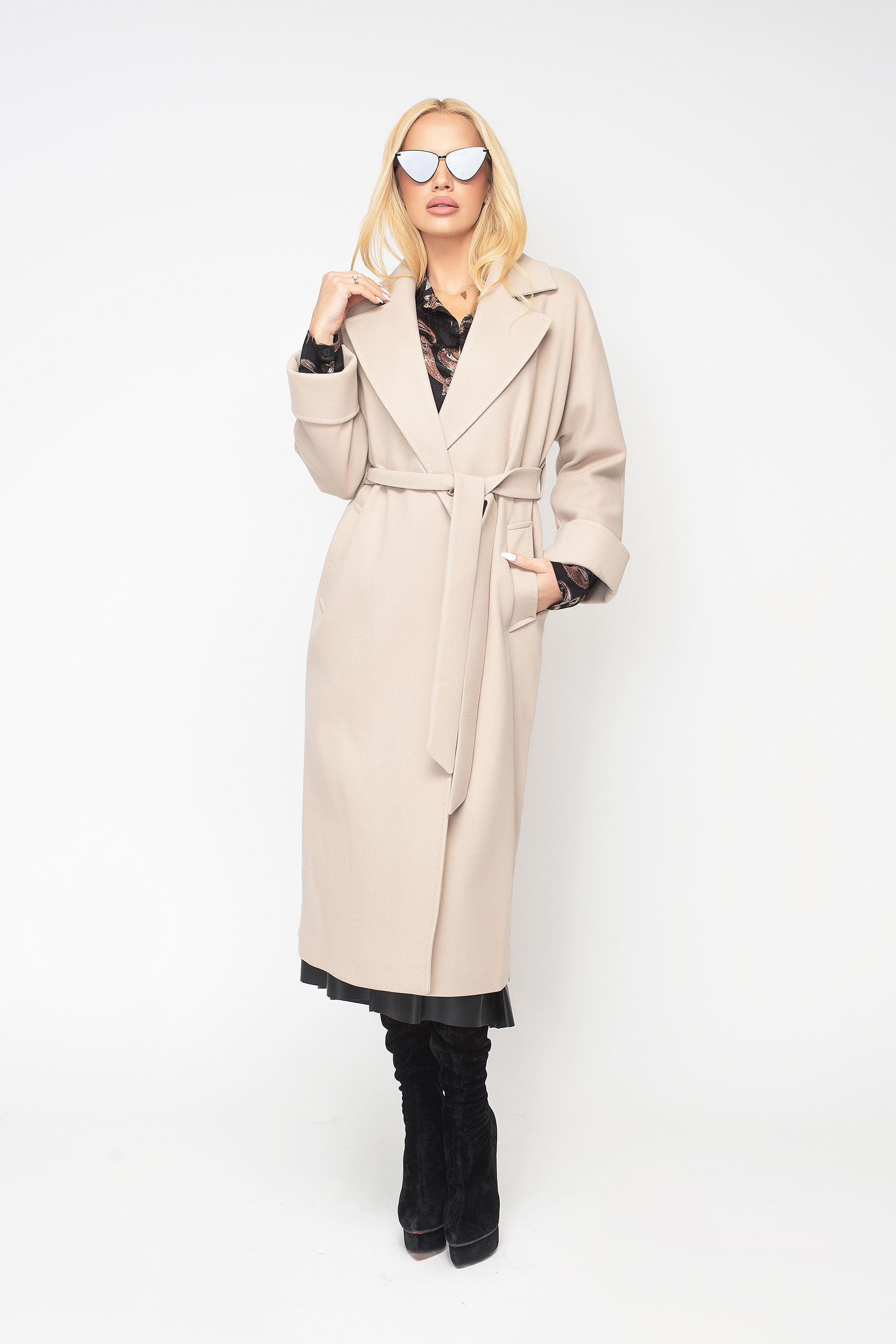 Cu revere și buzunare, paltonul prezintă o siluetă rafinată care cade elegant până la gleznă. Inchiderea se face cu nasturi si exista o curea in zona taliei. În spate, are fermoar prin mijloc care adaugă stil aspectului tău general.
