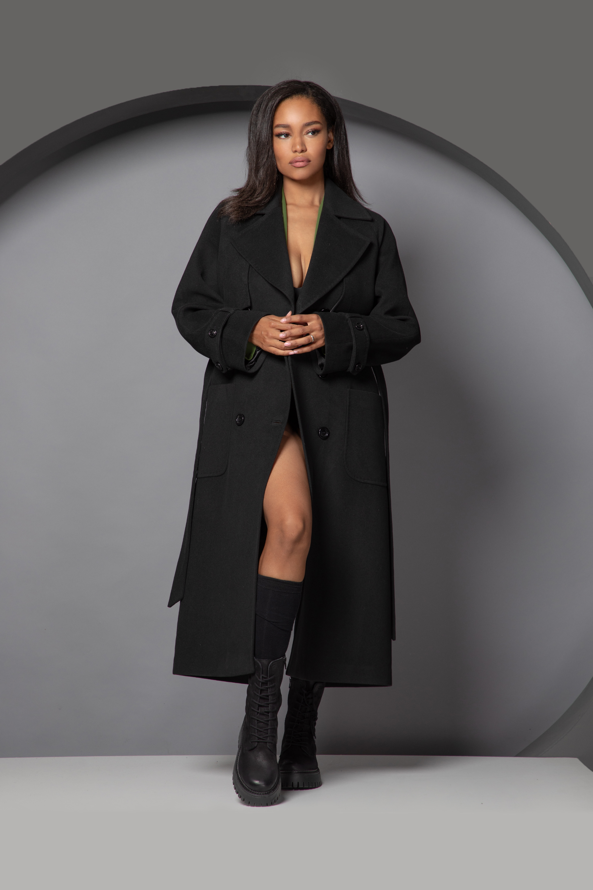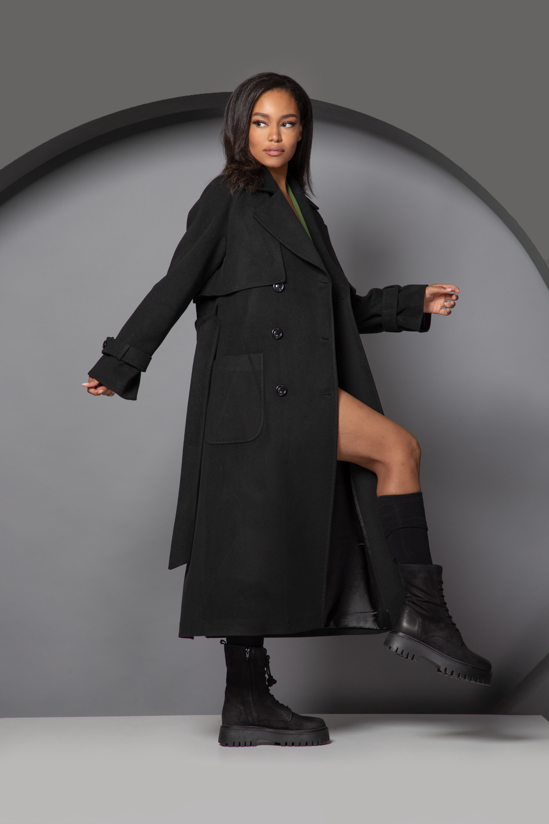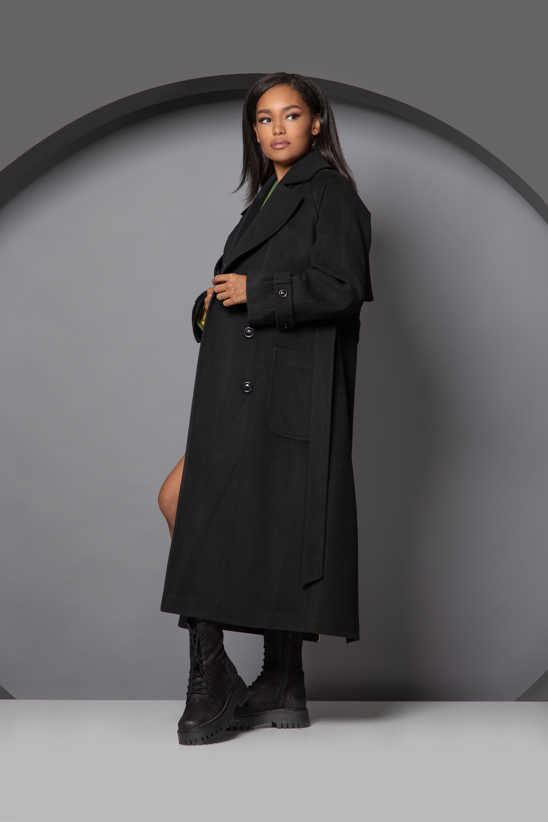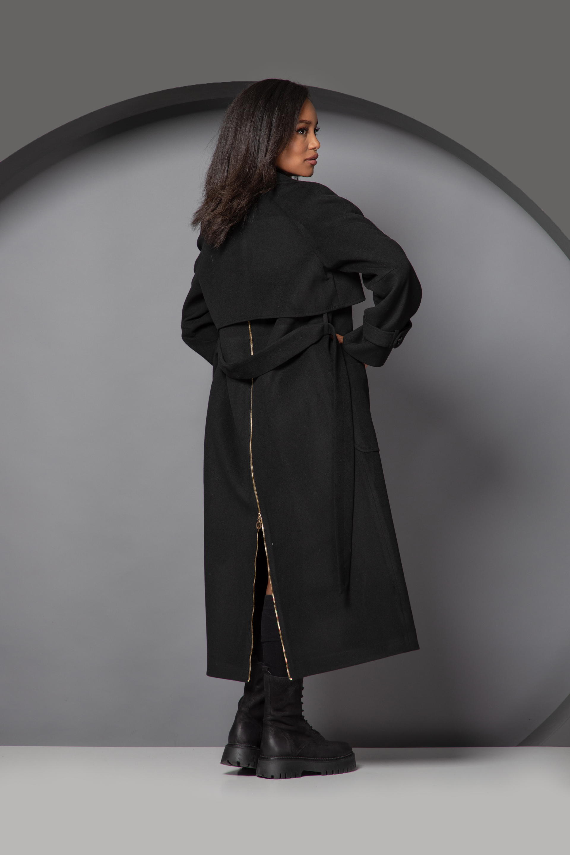 Описание: Cu revere și buzunare, paltonul prezintă o siluetă rafinată care cade elegant până la gleznă. Inchiderea se face cu nasturi si exista o curea in zona taliei. În spate, are fermoar prin mijloc care adaugă stil aspectului tău general.