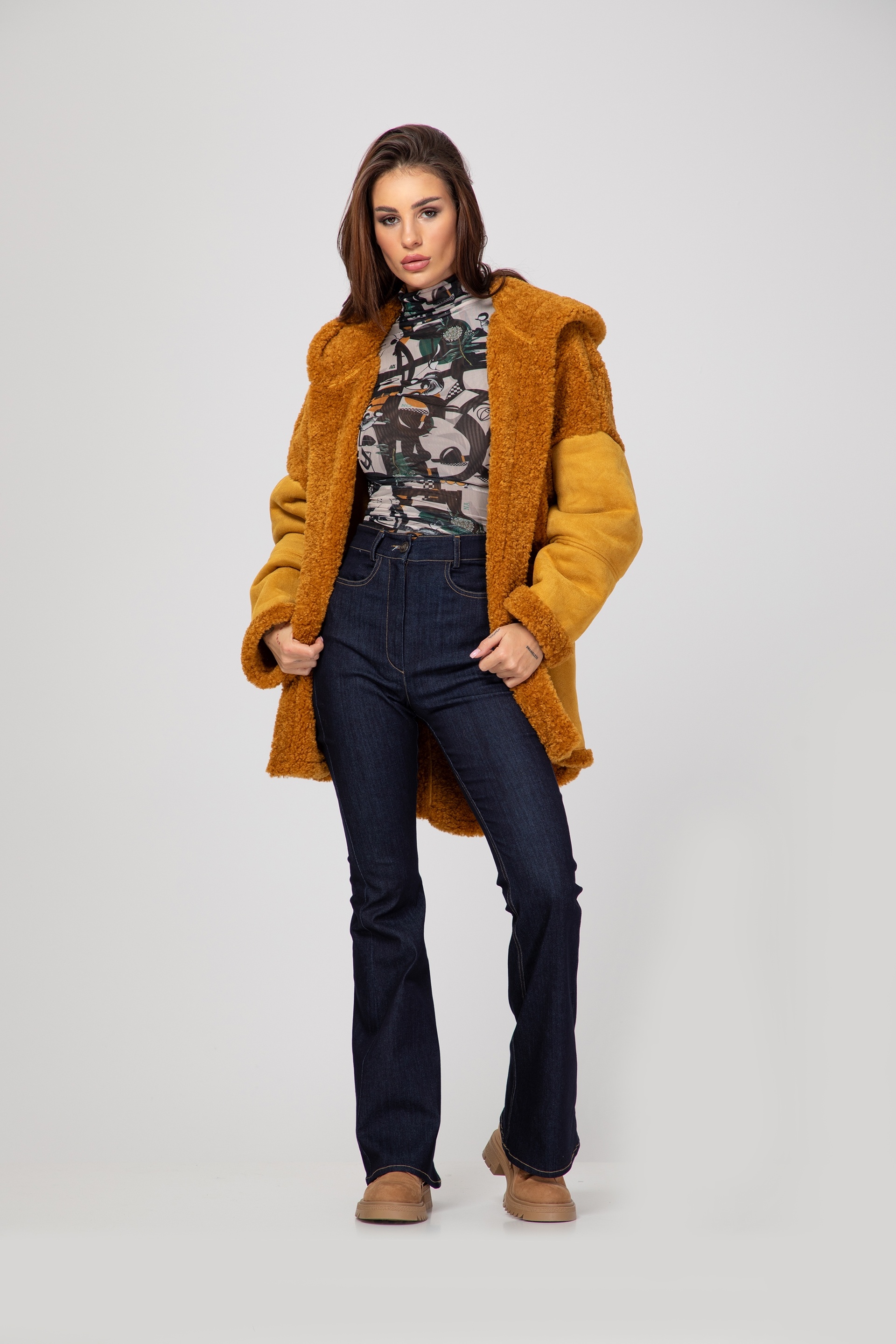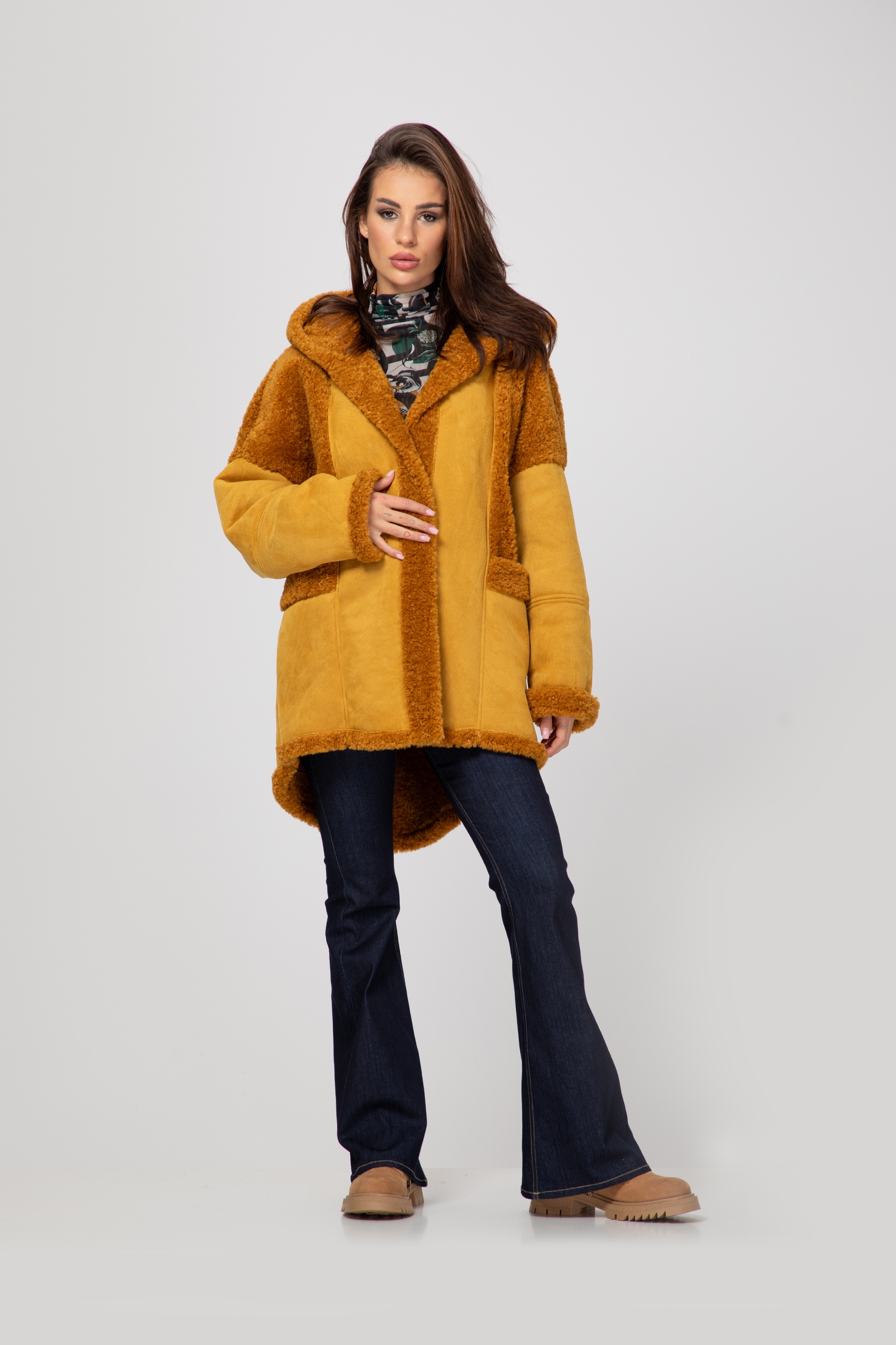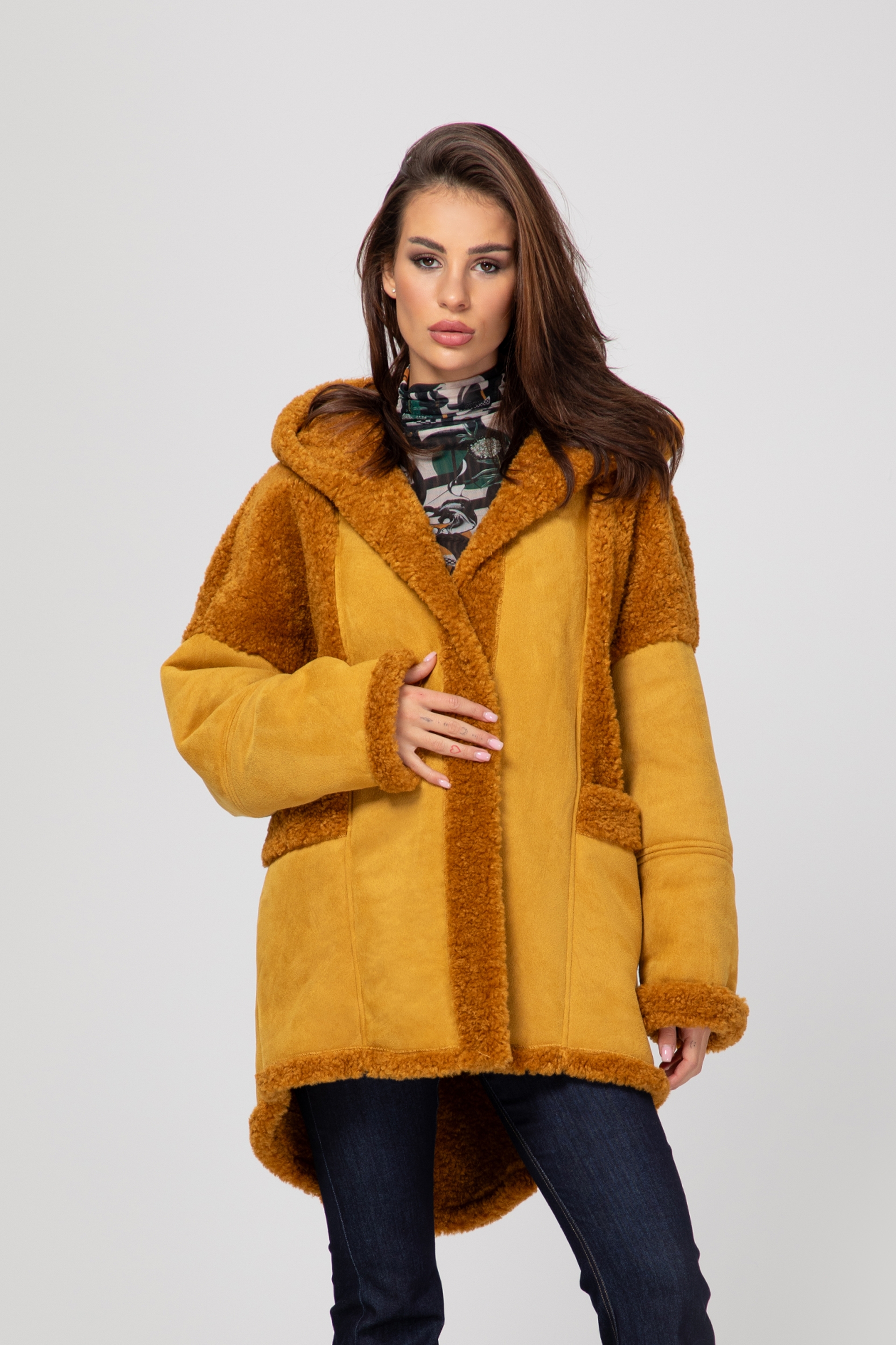 Описание: Palton lung cu astragan, unicolor și două buzunare frontale. Inchidere cu nasturi in fata.