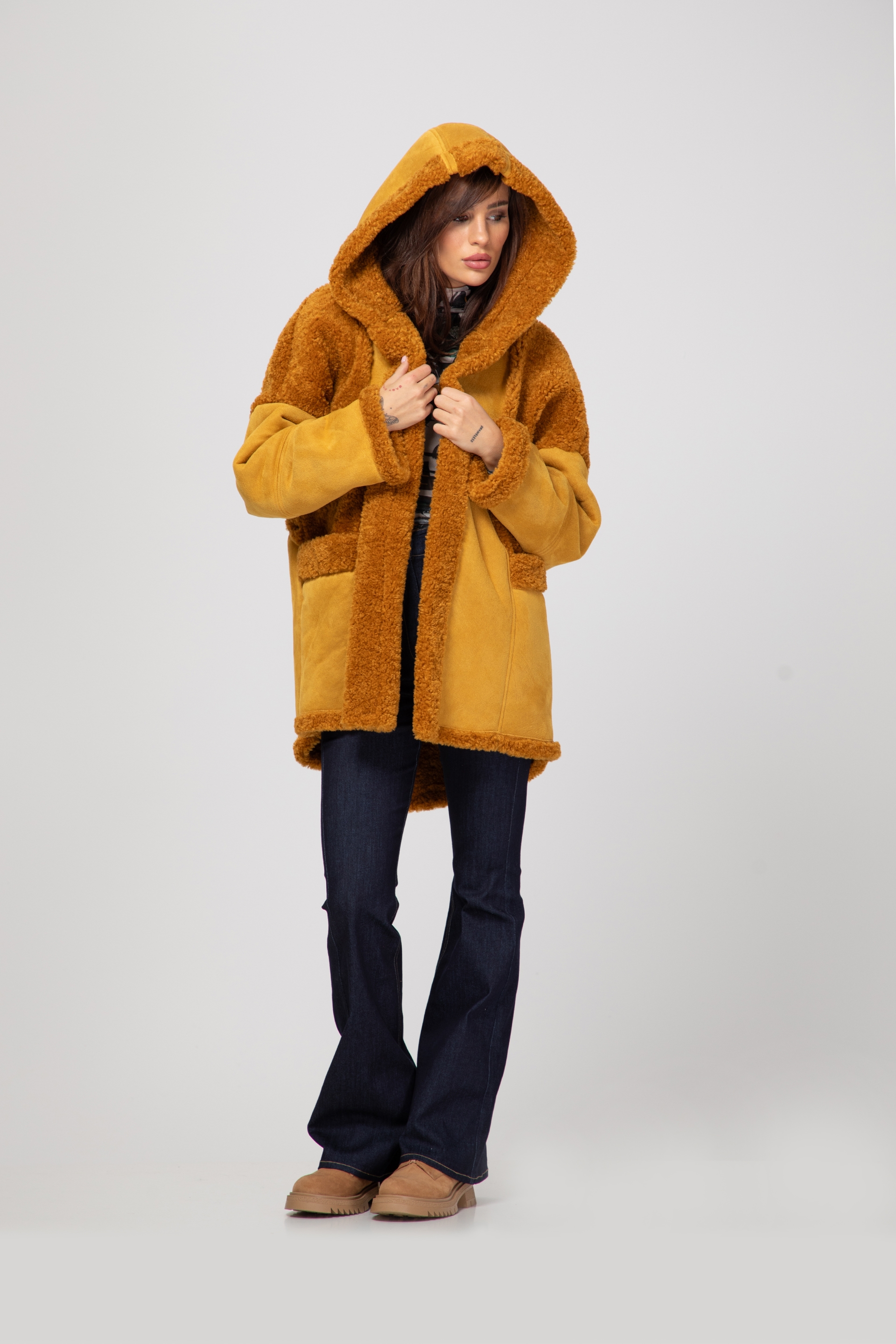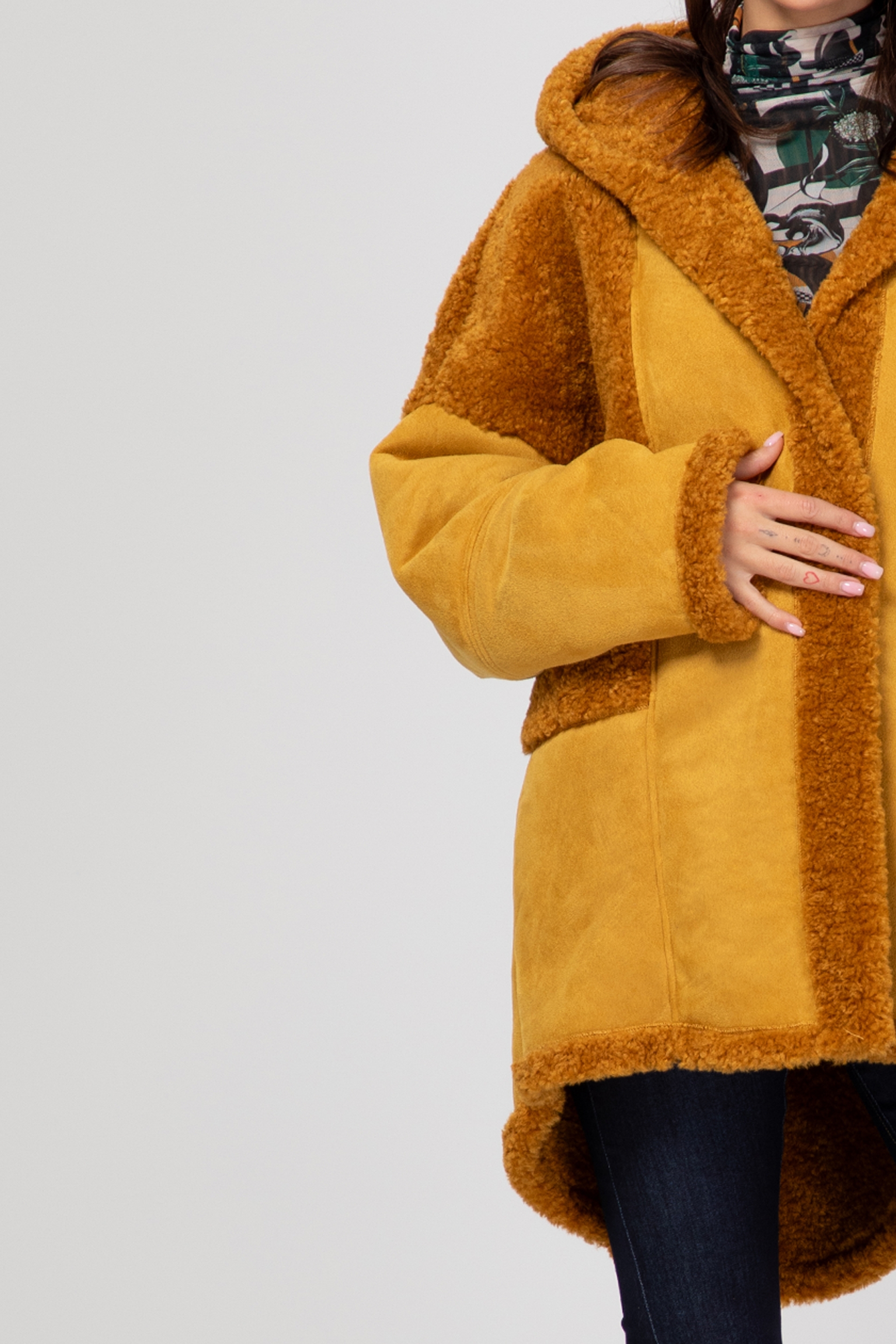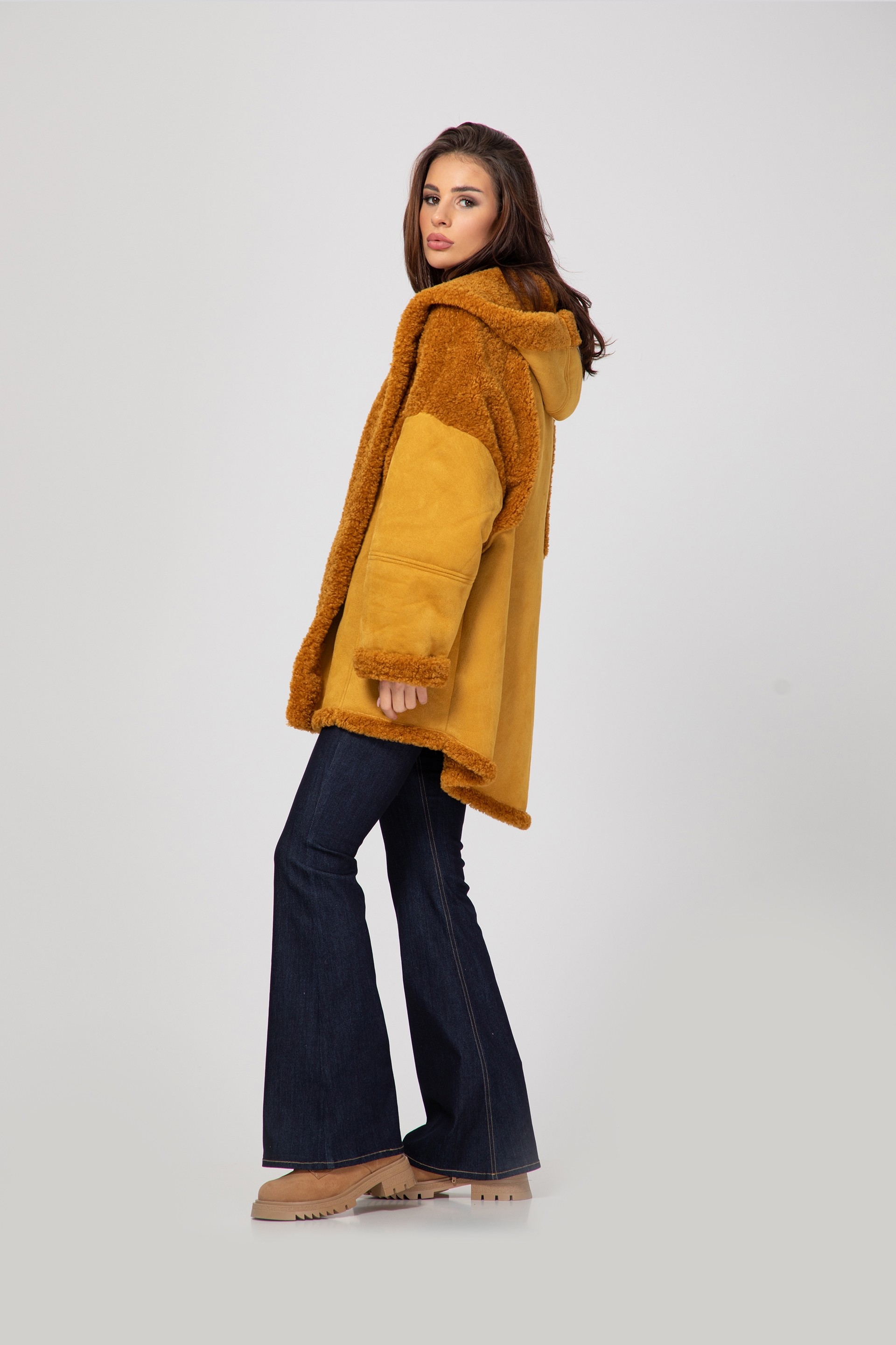 Описание: Palton lung cu astragan, unicolor și două buzunare frontale. Inchidere cu nasturi in fata.